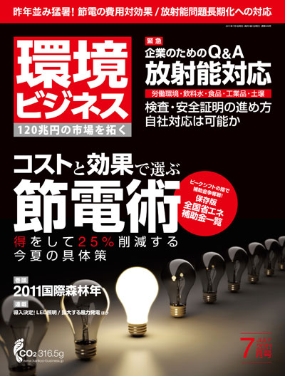 月刊 環境ビジネス2011年7月号(価格:1200円(税込)、発行元:株式会社日本ビジネス出版)の中面の制作を担当させて頂きました。